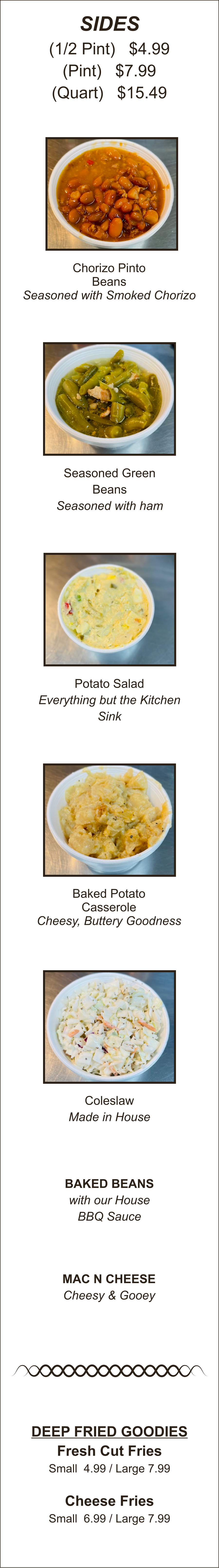 On all Family Packs, you can choose more than one type of meat as well as sides. (No Ribs) (Plates &